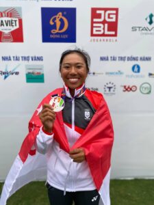 Resilience was similarly exemplified by our golfers in both the men’s and women’s team events. With teammate Inez Ng unfortunately contracting COVID shortly before the Matchplay event, Hailey Loh and Aloysa Atienza rose to the challenge and claimed victory in the Women’s Quarter Finals against Myanmar, with Hailey Loh winning 1 up and Aloysa Atienza winning 4 and 2. In the Semi-Finals, Singapore lost to Malaysia despite a valiant display of Golf, with Malaysia’s Jeneath Wong winning 1 up against Hailey Loh and Mirabel Ting winning 5 & 4 against Aloysa Atienza.