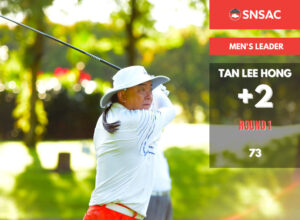 In the men’s division, Tan Lee Hong takes the lead with a two-over 73, ahead of Jimmy Aw who shot a 74 (+3) and Henry Choo who shot a 77 (+6).