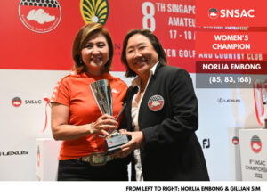 In the women’s division, Norlia Embong successfully defended her title with a final total of twenty-four over par (168), nine shots ahead of second place Jasmine Chew.