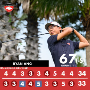 SGA National Squad member Ryan Ang is in Tied 1st after he fired a stunning five-under par 67 after his opening round. He is in contention with Australia’s Connor McDade, Kai Komulainen, Harrison Crowe and England’s John Gough. SGA National Squad Daryl Low got off to an solid start with a one-over par 73 after his first round.
