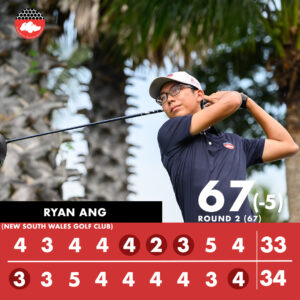SGA National Squad player Ryan Ang continue his streak with an impressive five-under par 67 and has a two-round total of ten-under par 134. He is currently Tied 1 alongside with New Zealand’s Kazuma Kobori. SGA National Squad member Daryl Low had a solid round as he completed his second round with a two-under par 70 and has a two-round total of one-under par 143.