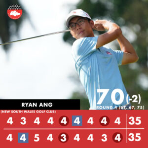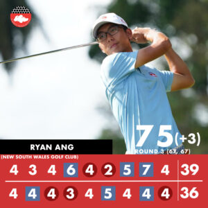 SGA National Squad member Ryan Ang carded a three-over par 75 in his third round and has a three-round total of seven-under par 209. He is currently is Tied 6th with Australia’s Jeffery Guan, Lukas Michel, Sam Jones and United Kingdom’s John Gough. Ryan shares that he will continue to focus on his strategy for the final round.