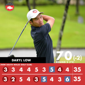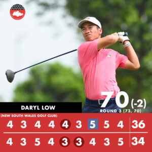 SGA National Squad member Daryl Low had a great round of two-under par 70 and a three-round total of three-under par 213. Daryl expressed he is satisfied with his round of golf today and will maintain his good play to the final round.