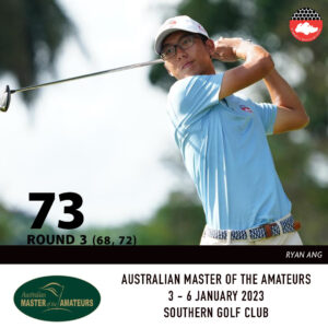 SGA National Squad member Ryan Ang carded a one-over par 73 and has a three-round total of three-under par 213. This leaves him tied in 17th position with Hong Kong’s Kho Taichi. He shared that he will continue to focus on his strategy and to stay present for the final round.