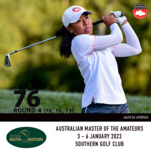 SGA National Squad member Aloysa Atienza ended her round with a three-over par 76 for a four-round total of nine-over par 301.